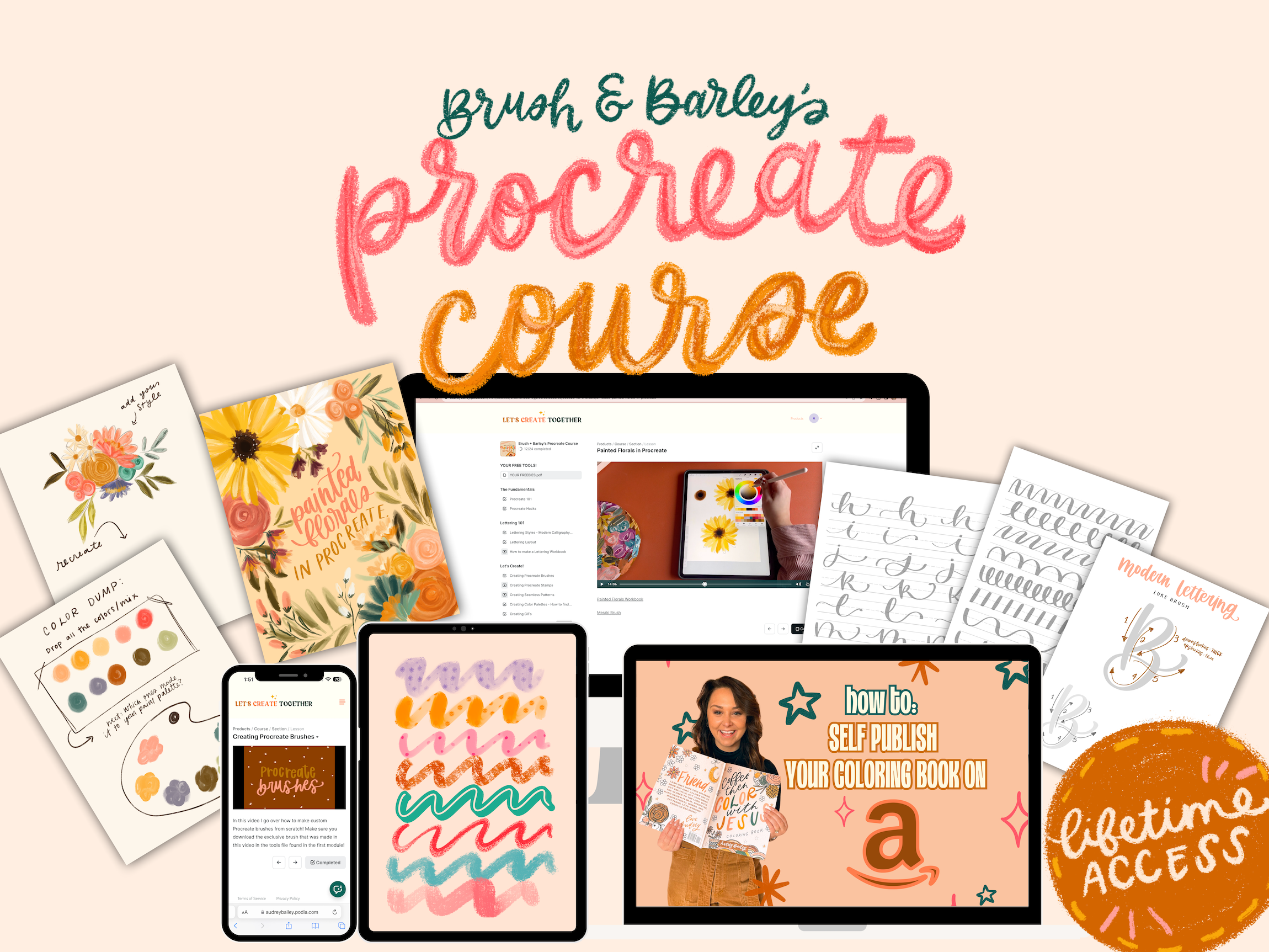 This course is made up of 9 lesson videos including procreate 101, lettering, making brushes, and so much more! make sure to press the 'View Course' Button to see the lessons included.